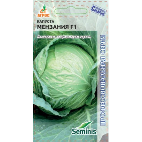 Новый высокопродуктивный среднепоздний гибрид. Растение мощное. Розетка листьев горизонтальная. Кочан округло-плоский, покрытый, на разрезе беловатый. Внутренняя структура кочана плотная, хрустящая. В отличие от большинства стандартных гибридов для переработки, полностью отсутствует горечь. Наружная и внутренняя кочерыга средней длины. Масса кочана 2,0- 3,2 кг (до 6 кг). Вкус хороший и отличный. Рекомендуется для использования в свежем виде, квашения и краткосрочного хранения (5-6 месяцев). Гибрид Мензания F1 отличается хорошей сохраняемостью на корню и транспортабельностью, устойчив к сосудистому бактериозу и фузариозу. Особенности выращивания: При высадке растения заглубляются до 1-го настоящего листа.